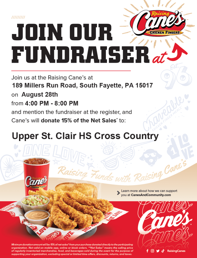 TODAY is the day…take the night off from cooking and support the XC team! Spread the word to your friends and family and join us tonight at Raising Canes in Bridgeville. Mention you are with USC Cross Country and we get a portion of the sale back.